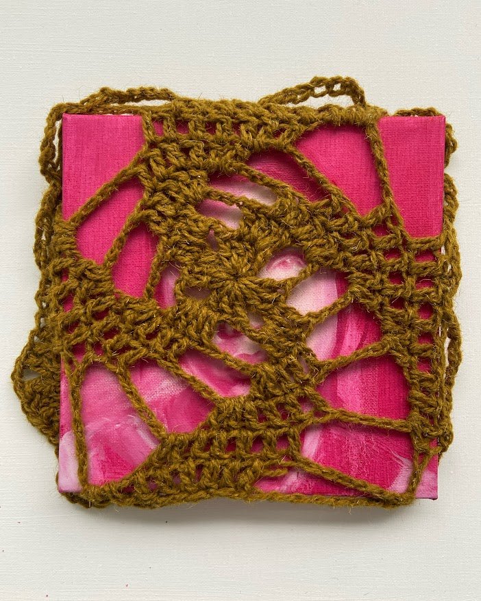 oil and crochet on canvas
