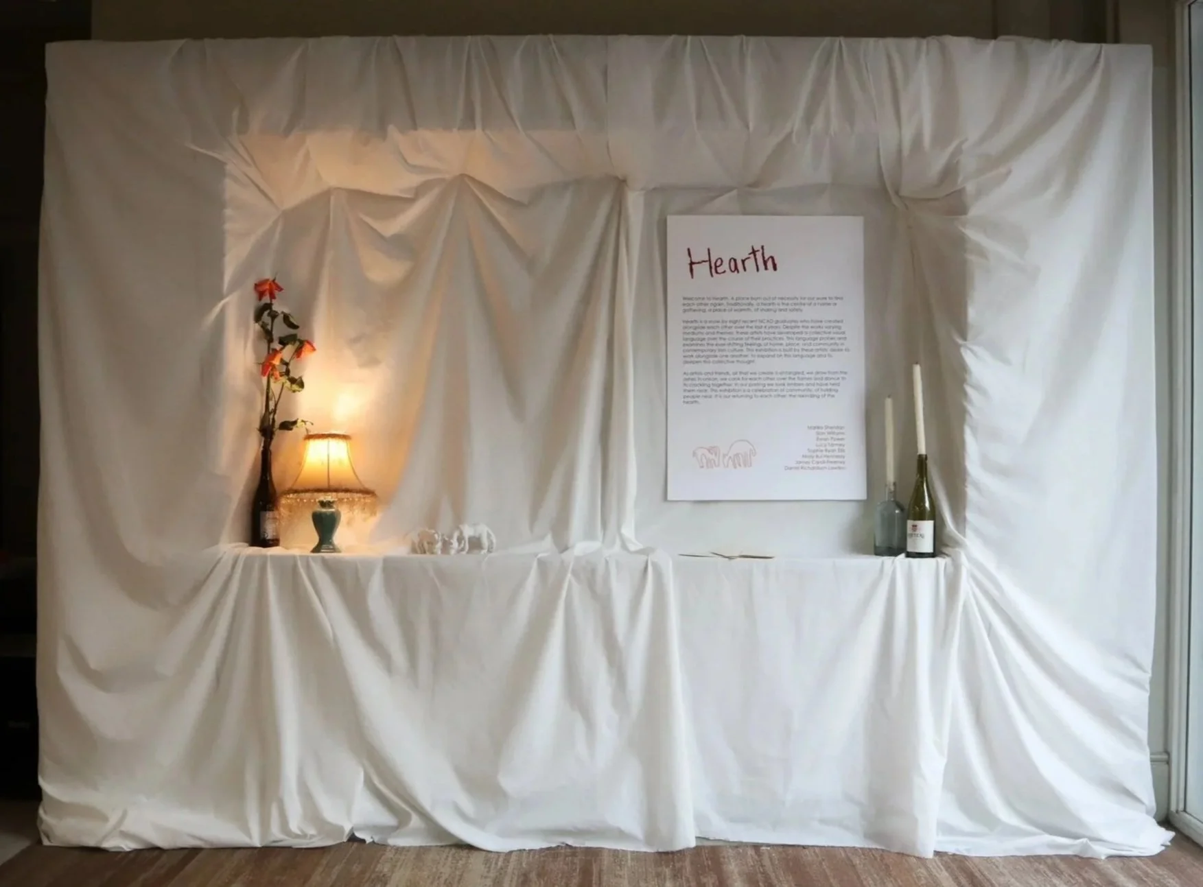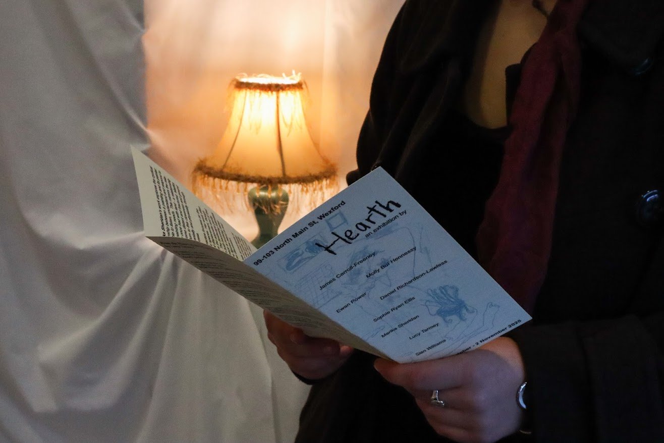 Hearth is a show by eight recent NCAD graduates who have created alongside each other over the last four years. Despite the works varying mediums and themes, these artists have developed a collective visual language over the course of their practices.This language probes and examines the ever-shifting feelings of home, place, and community in contemporary Irish culture. This exhibition is built by these artists' desire to work alongside one another, to expand on this language and to deepen this collective thought.