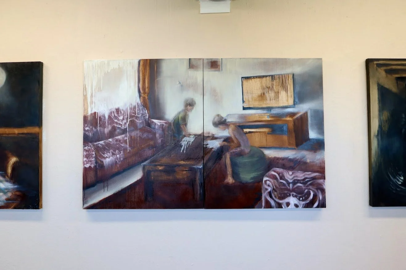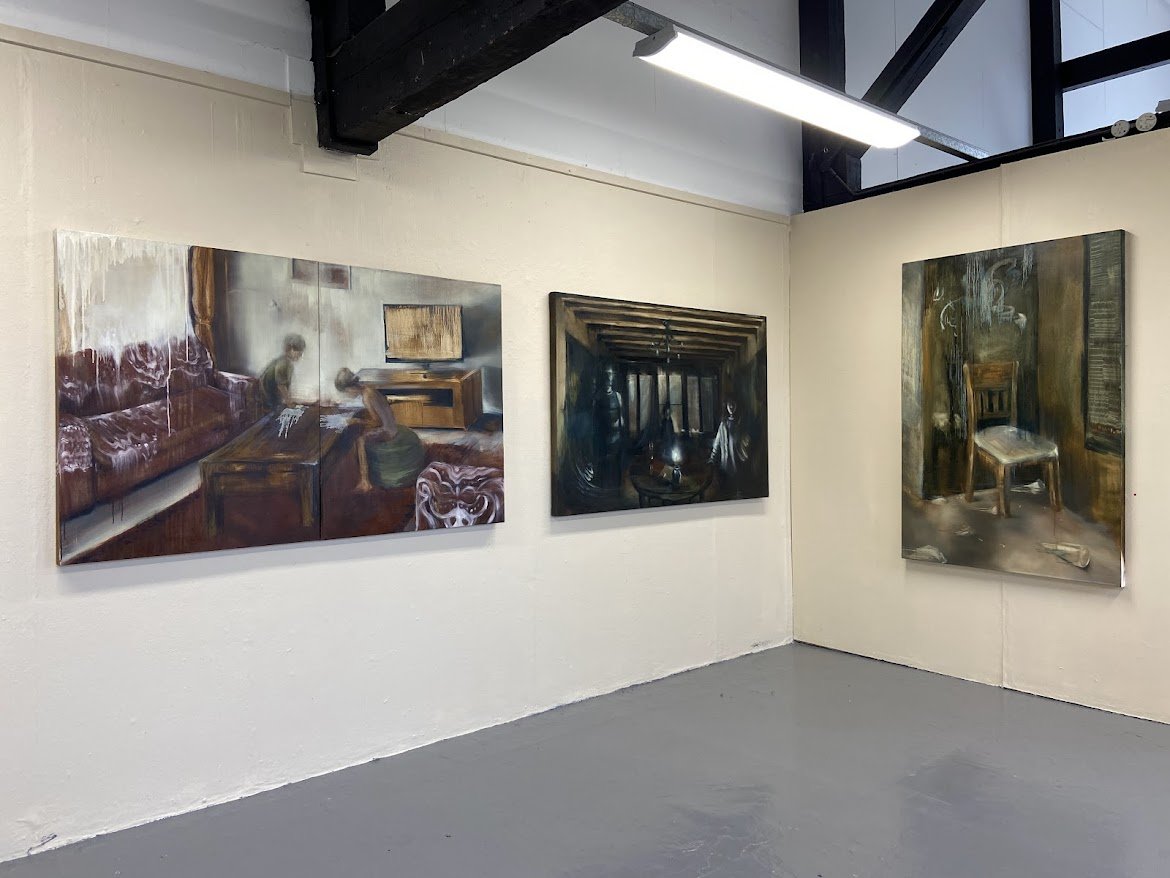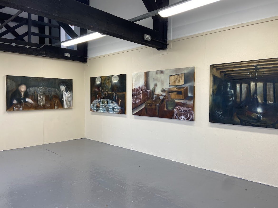 Curiosity is an integral part of these works within viewing and creating. Fleeting figures attempting to occupy transient spaces. Questioning our interactions with spaces as ever changing beings, acknowledging that familiar spaces also change in often conflicting ways. Utilising objects as anchoring points offering the viewer a tangible entry point into an otherwise abstracted interior. All of these scenes are carefully selected, individuals past and present briefly inhabiting spaces that are not theirs to call ‘home’.